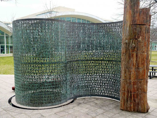 در سال 1990 میلادی، هنرمند آمریکایی جیمز سنبورن، سازهای به نام کریپتوس ساخت و در محوطه کلیک سازمان اطلاعات مرکزی آمریکا (سیا) نصب کرد. این سازه یک صفحه مسی شکل است که در واقع، ورق کاغذی است که از پرینتر بیرون آمده است. از چهار رمزی که روی این سازه حک شدهاند، سه رمز کشف شده است، اما رمز چهارم با اینکه کارکنان سیا و رمزگشایان حرفهای و تازهکار روی آن کار کردهاند، هنوز نامکشوف مانده است و به عنوان یکی از معروفترین رمزهای ناگشوده دنیا شناخته میشود. در سال ۲۰۰۳ میلادی، یک گروه در یاهو راهاندازی شد تا فعالیت 2 هزار نفری را که برای گشودن این نوشته تاریخی کار میکنند، هماهنگ کند. در سال ۲۰۰۶ میلادی سنبورن روشن کرد که در متن چهارم، یک حرف برای اینکه به زیبایی اثر لطمه نخورد، جا افتاده است و چند مورد اشتباه دیگر هم در آن وجود دارد. چهار سال بعد سنبورن رمز پنج حرف دیگر را اعلام کرد و به این ترتیب کلمه برلین به دست آمد. حروف موجود روی بدنهی اصلی تندیس، 870 تا هستند.