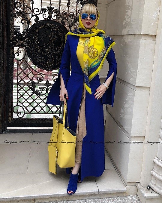 رنگ آبی و زرد هر دو از رنگ های اصلی و مکمل هم هستند.مانتوهای خیلی بلند با شلوار لگ ست زیبایی تشکیل می دهند.