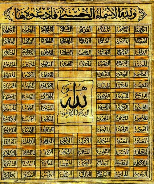 اين 99 اسم خداوند به همراه معني آنها به شرح زير است: